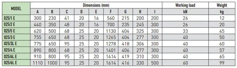 – Interchangeable aluminum lining sectors kit (Mod. ALR/…);