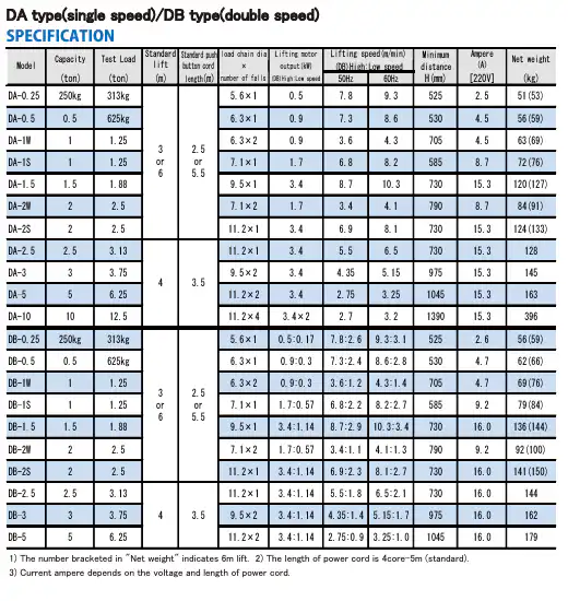 DA / DB Series Electric Chain Hoists