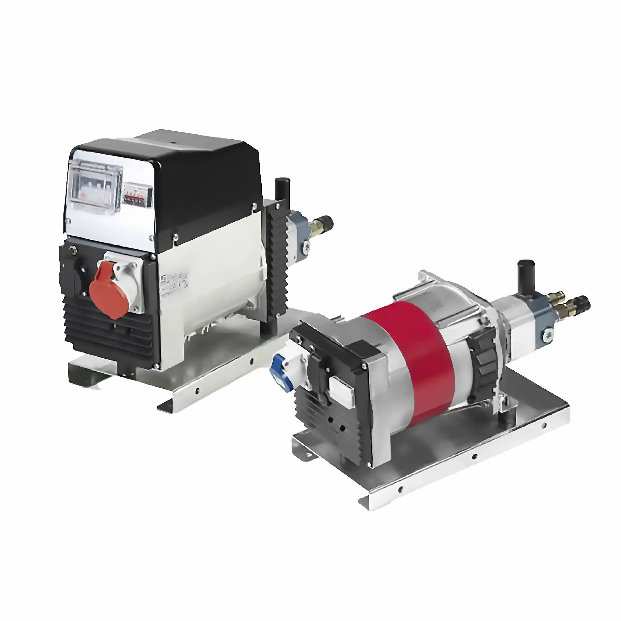 Compact hydraulically powered generators with output capacities of 3 kVA to 40 kVA, 110 – 220V, 50-60Hz.