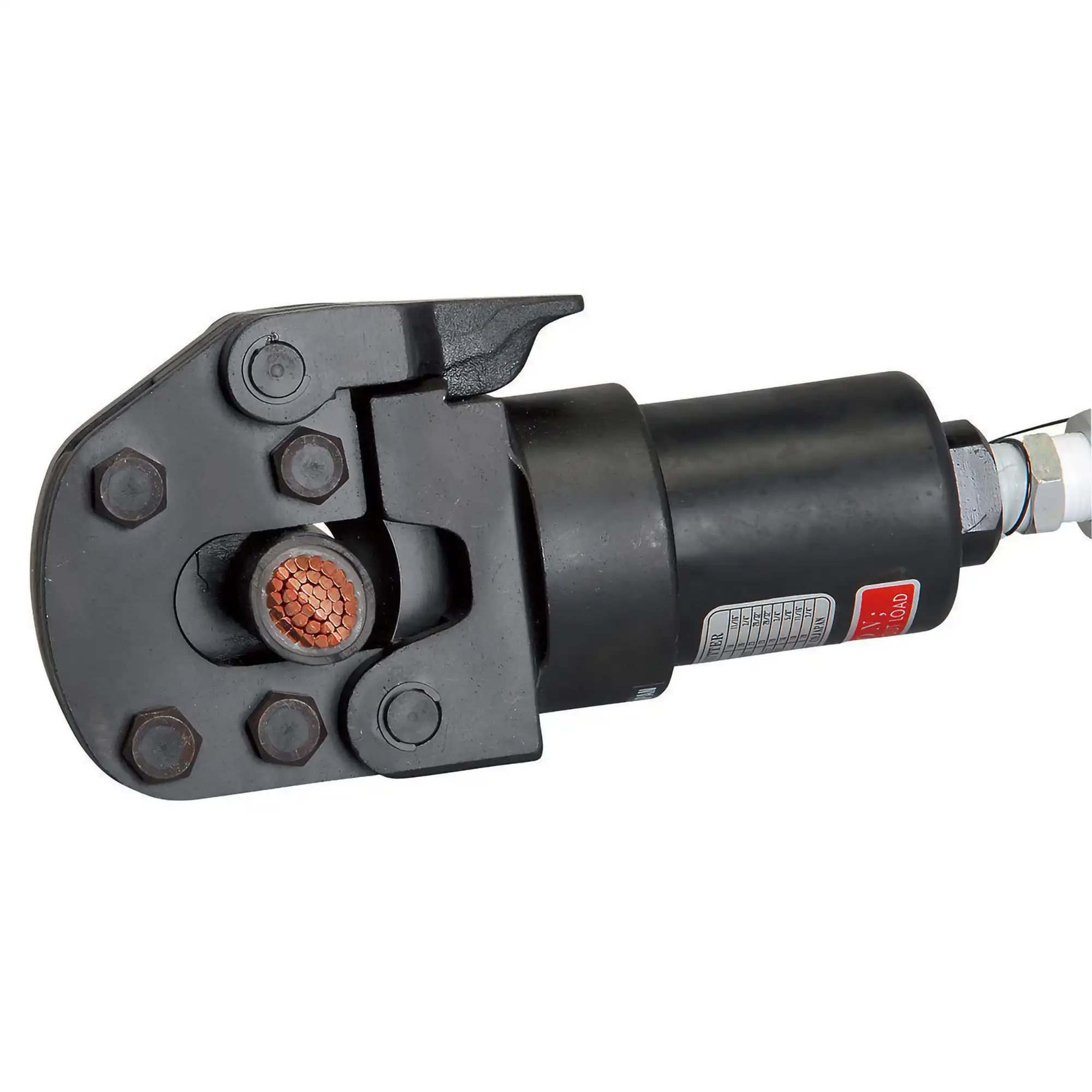 It can be operated by any 700 bar hydraulic pump. The blades are easily replaceable and the head has a flip-top latch for easy insertion of cutting material.