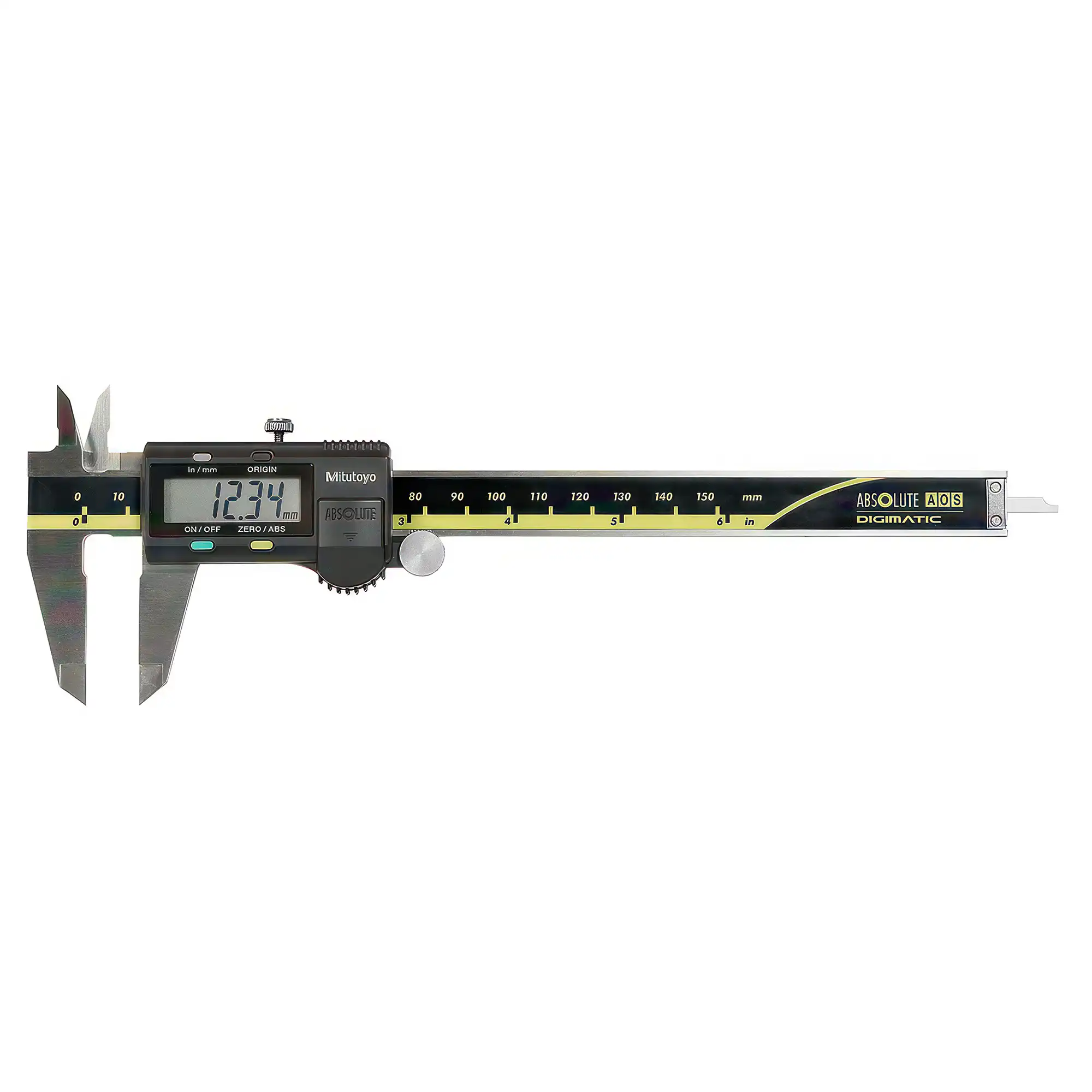 6″ / 150mm x .0005″ / 0.01mm resolutions Absolute Digimatic Caliper, Metric and imperial display, Without data output facility