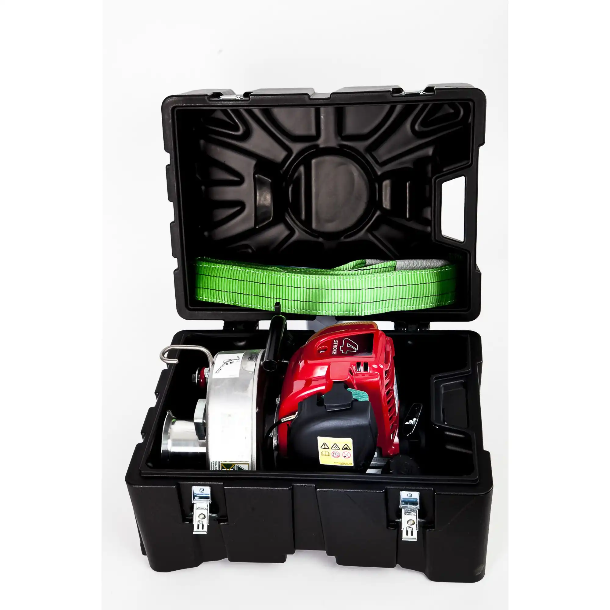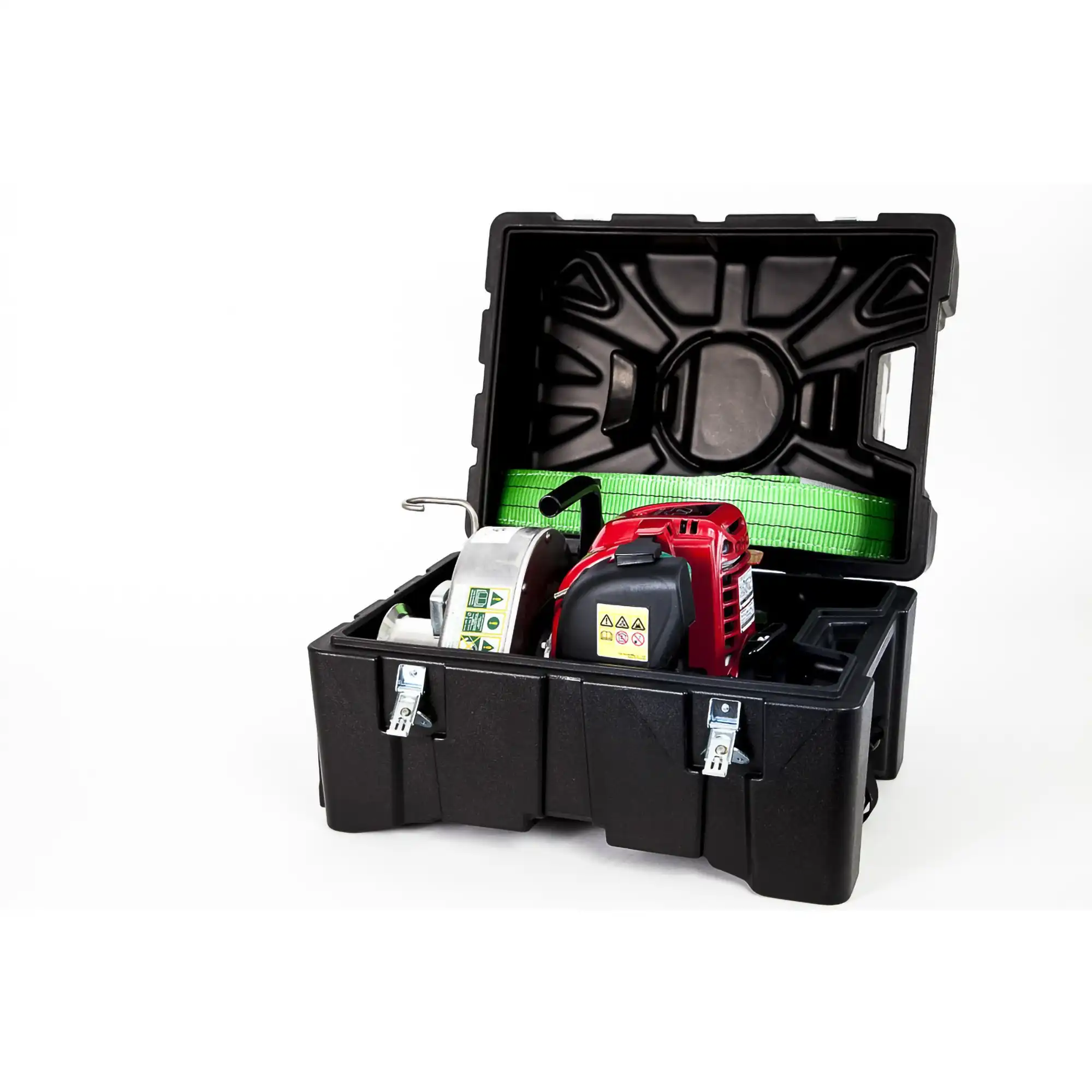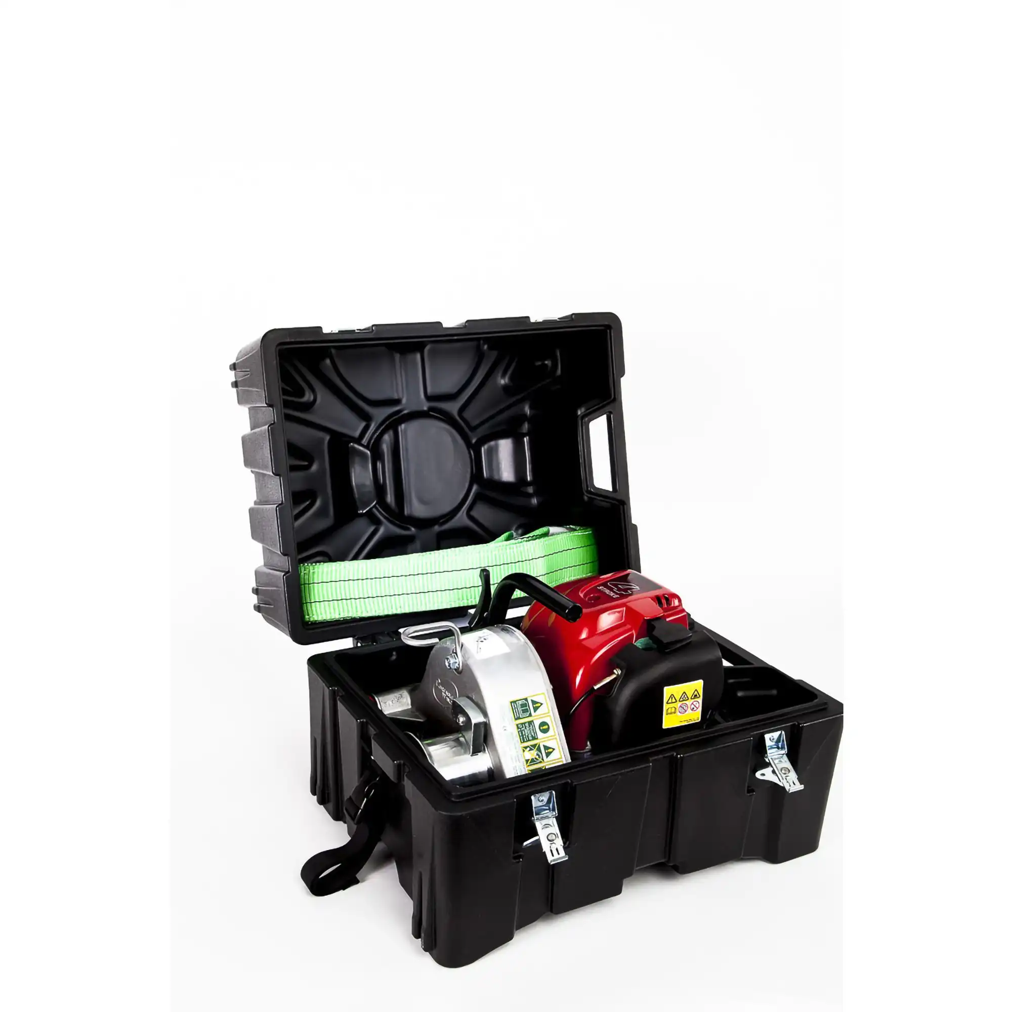 - Carry and store a winch safely in this durable and robust box made of high-performance plastic, with molded locations.